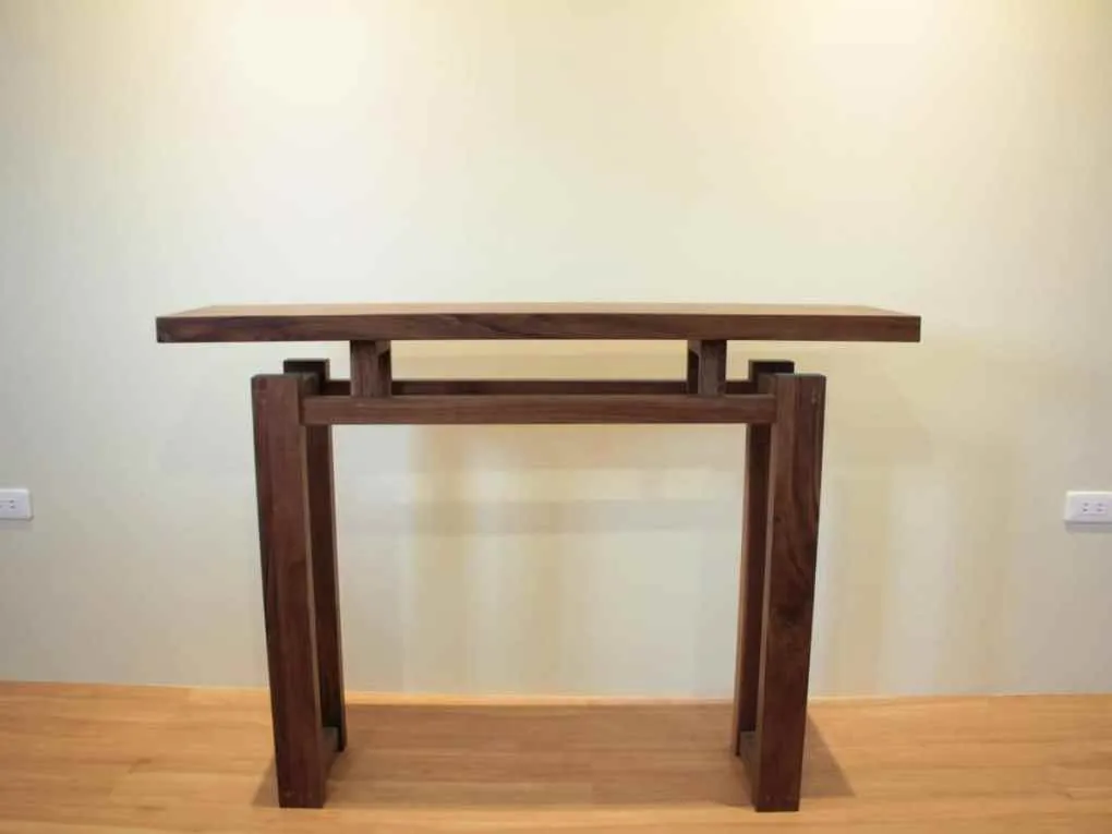 當然,這張玄關桌不僅要實用,也要具備高品質。我會選擇使用北美FAS等級的全胡桃實木製成,木材的自然紋理與溫潤色調,能提升空間的格調,散發出低調奢華的氣息。
